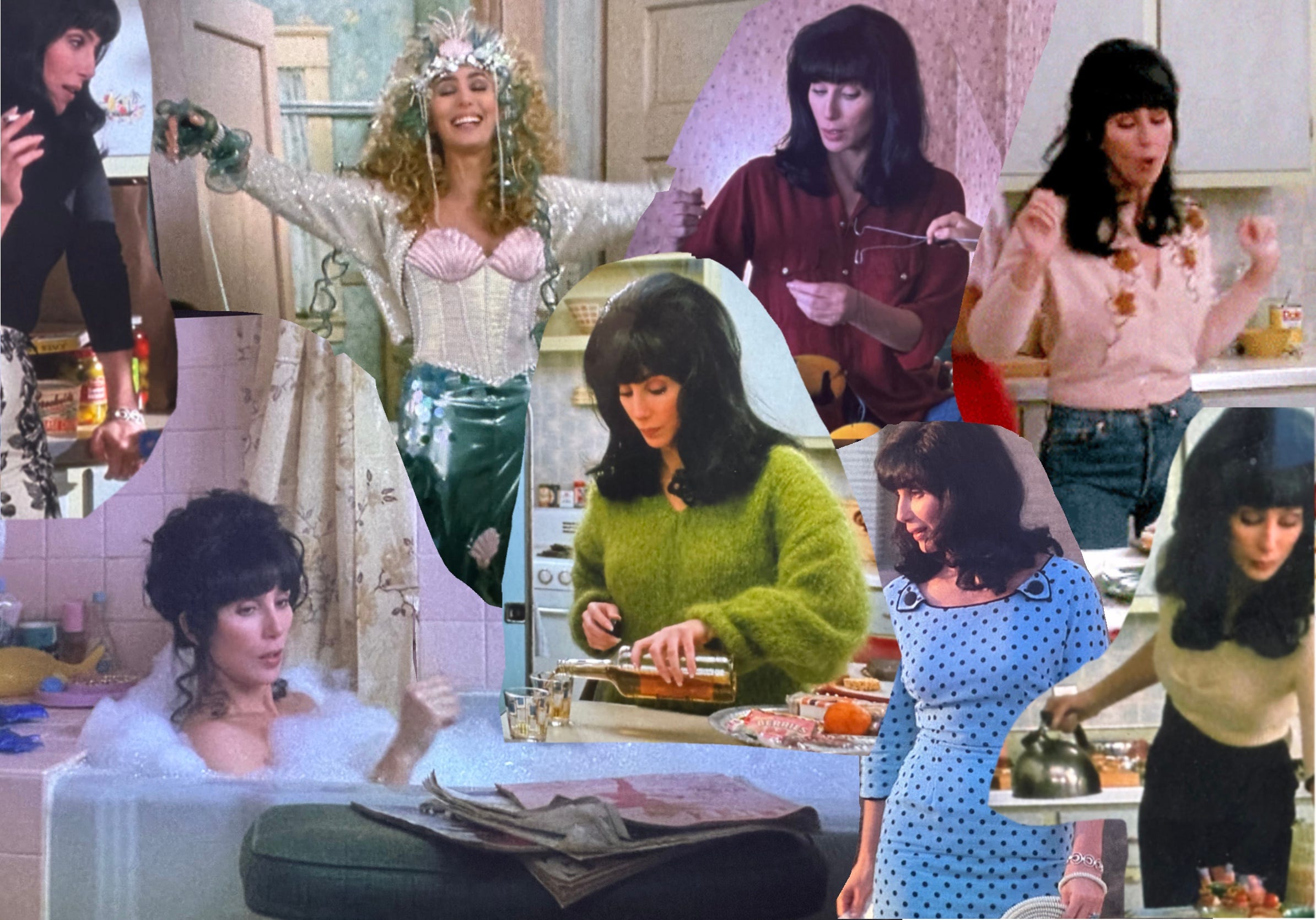 This may get me shot by a firing squad of gays, but I was not actually familiar with the full extent of Cher’s glamour. I know the songs, the drag impersonations, and that iconic interview where she calls herself a rich man. But what started as a casual viewing of Moonstruck quickly turned into an IMDB binge, from The Witches of Eastwick to Mermaids, which may have changed my life. And by life, I mean wardrobe, which, really, is the same thing.